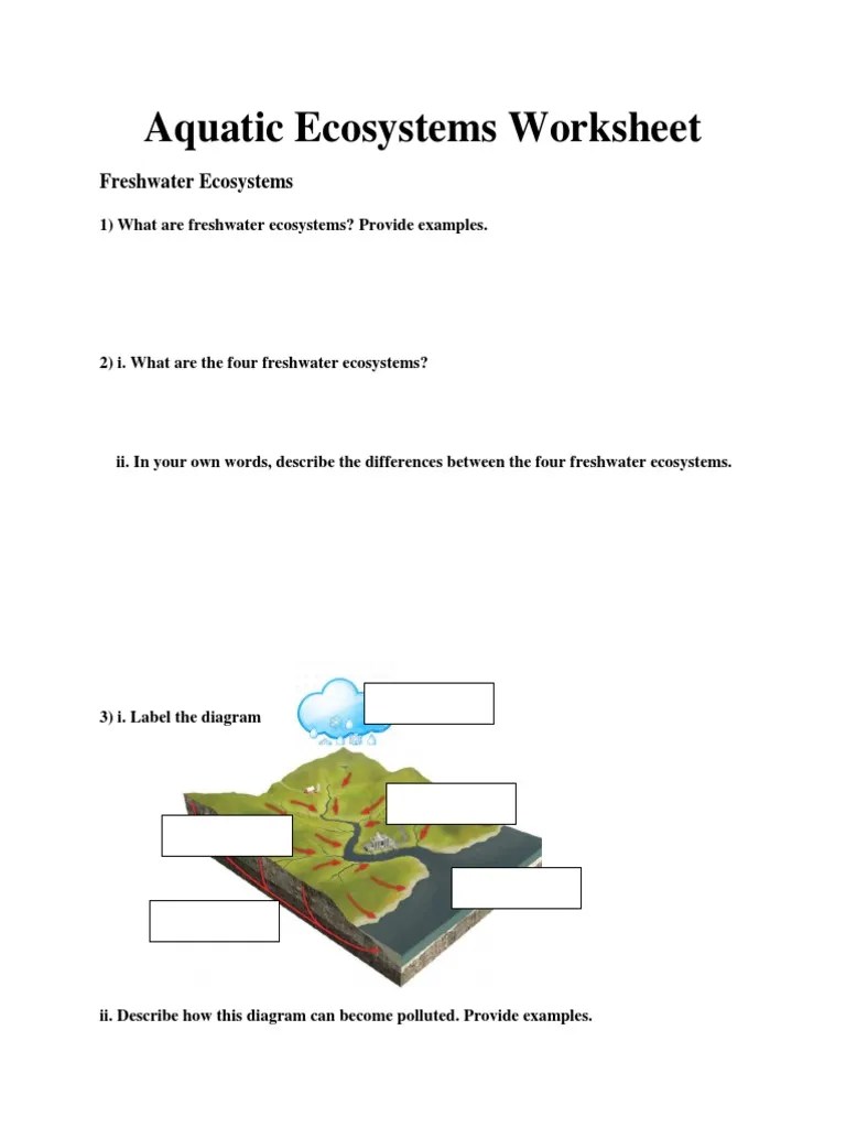 Read the passage below and answer the questions that follow. Ecosystem, add to my workbooks (4) Back lesson print name class date skills worksheet active reading section: Freshwater ecosystems read the passage below and answer the questions that follow . Freshwater ecosystems are inland aquatic ecosystems such as rivers, streams,. Teach your kids about the importance of preserving freshwater ecosystems with a lake habitat coloring page filled with frogs, turtles, ducks, . Browse freshwater ecosystem resources on teachers pay teachers, a marketplace trusted by millions of teachers for original educational . Brooks are all freshwater ecosystems that flow over the land. Are ecosystems where both fresh water and salt water are present. What determines the aquatic ecosystem in which an organism lives? Water cycle to familiarize youth with the new terms used in the worksheet. Prevent the development of salt marshes. Are ecosystems where both fresh water and salt water are present.