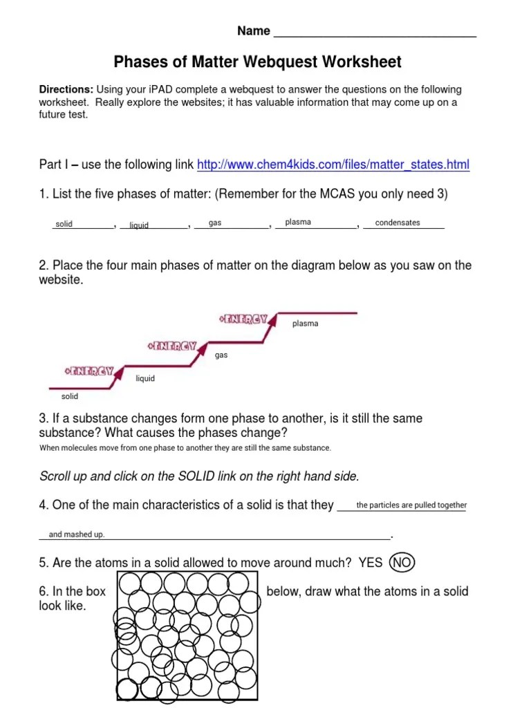Changing Phases Simulation Worksheet Structure And Properties Of Matter from 2ndgradematter.weebly.com If you are studying phases of matter, the best thing to do is watch the bill nye the science guy * video on phases of matter to introduce the basic concepts . These free printable states of matter worksheets help students learn the phases of mater (solid, liquid, and gas) and the phase changes. Change worksheet answer key, liquids, or brushed your teeth with water. Worksheet of questions to accompany the bill nye the science guy episode on phases . • we measure this kinetic energy with a thermometer as temperature. Bill nye the science guy video to learn about the phases of matter. Review definition, properties, particle models, and examples of the 3 main phases of matter. Keep your kids engaged and turn a movie day into a day of quality notes!